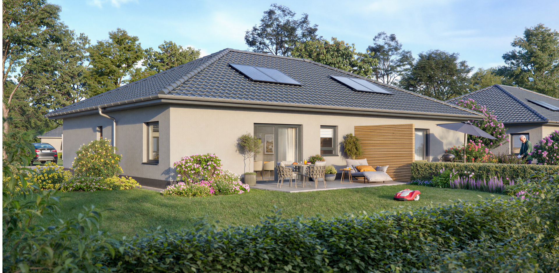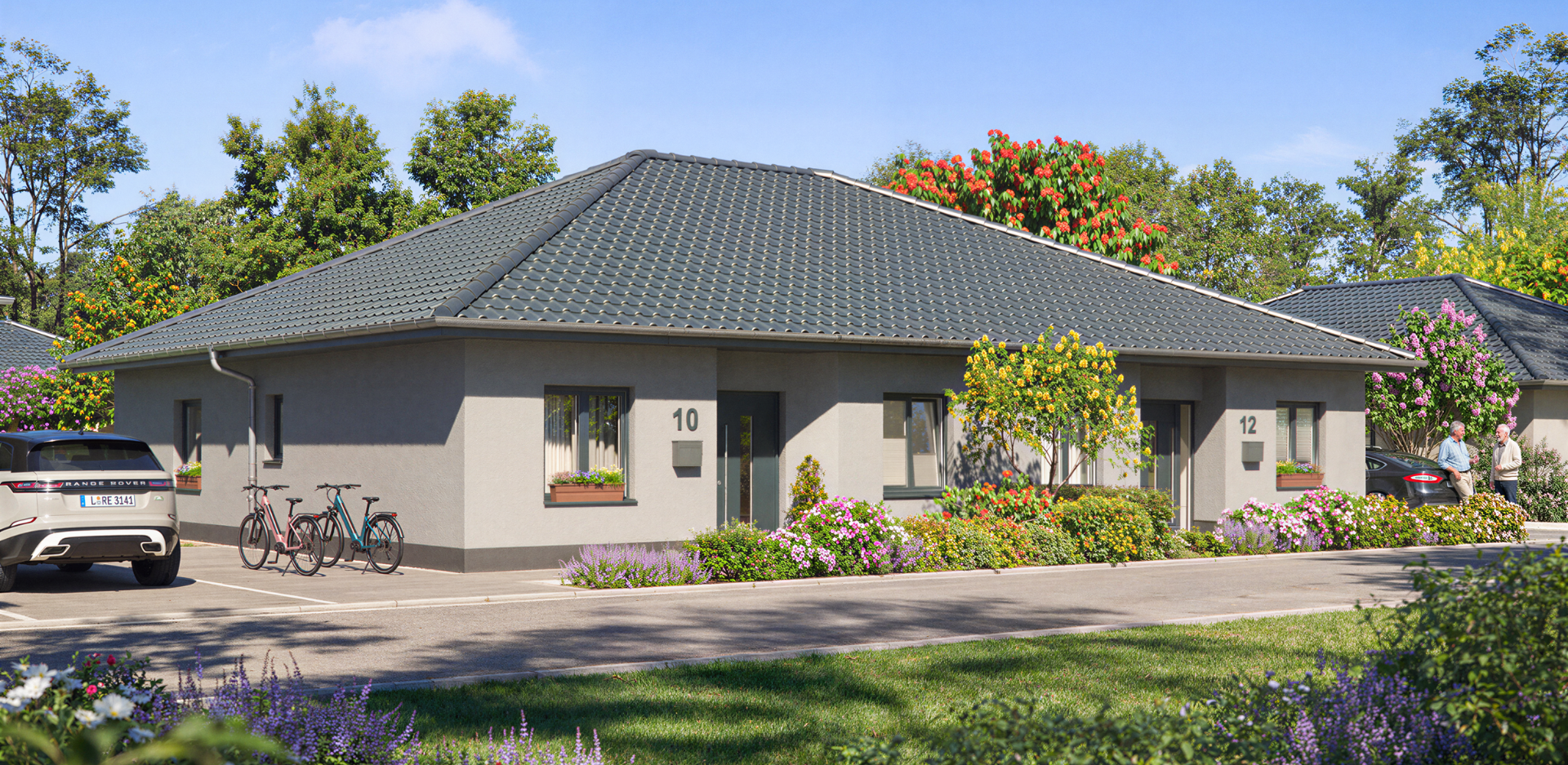 Zwei Bungalowtypen, ein Anspruch: Wohnen auf einer Ebene, ohne Kompromisse. Beide Modelle sind barrierefrei, gut durchdacht und für das Leben im Alter konzipiert. Sie verfügen zudem über einen eigenen Garten mit großzügiger Terrasse.